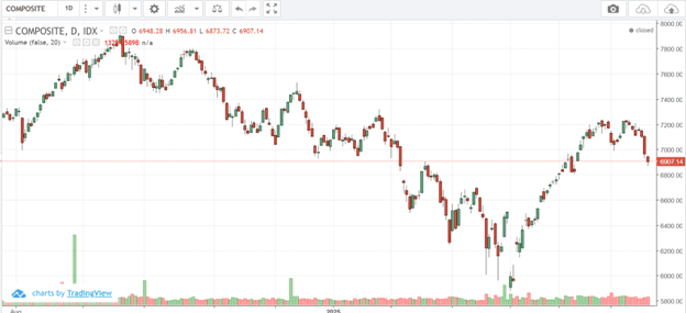 Indeks Harga Saham Gabungan (IHSG) melemah cukup dalam pada periode 13-20 Juni 2025 dengan ditutup dilevel 6.907 (-3,61%), kembali berada di bawah level 7.000. Pelemahan IHSG terlihat dalam seminggu terakhir yang terus terkoreksi tanpa adanya perlawanan, seperti pada hari Kamis, 19 Juni, di mana IHSG terkoreksi hingga -1,96% dalam satu hari.
